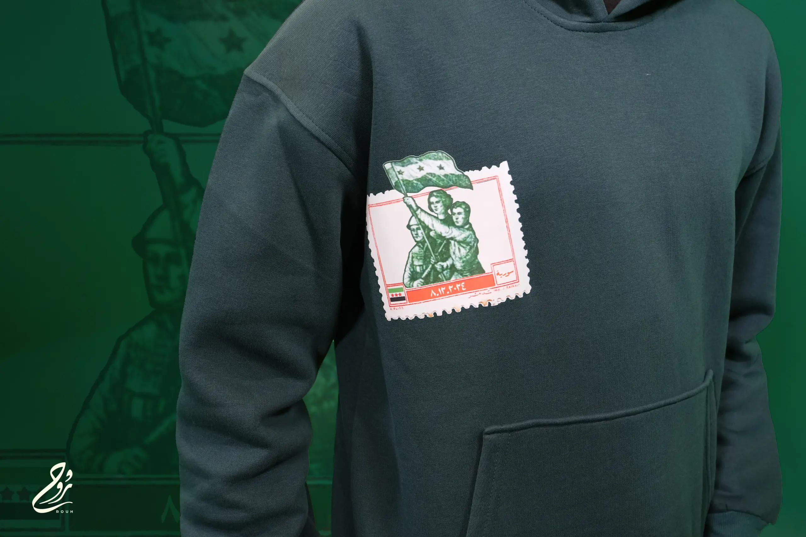 مستوحى من الطوابع السوريه التي اصدرت خلال الثورات ضد الفرنسيين يخلد هذا التصميم ذكرى تحرر المستمر للامه السوريه عبر التاريخ.
