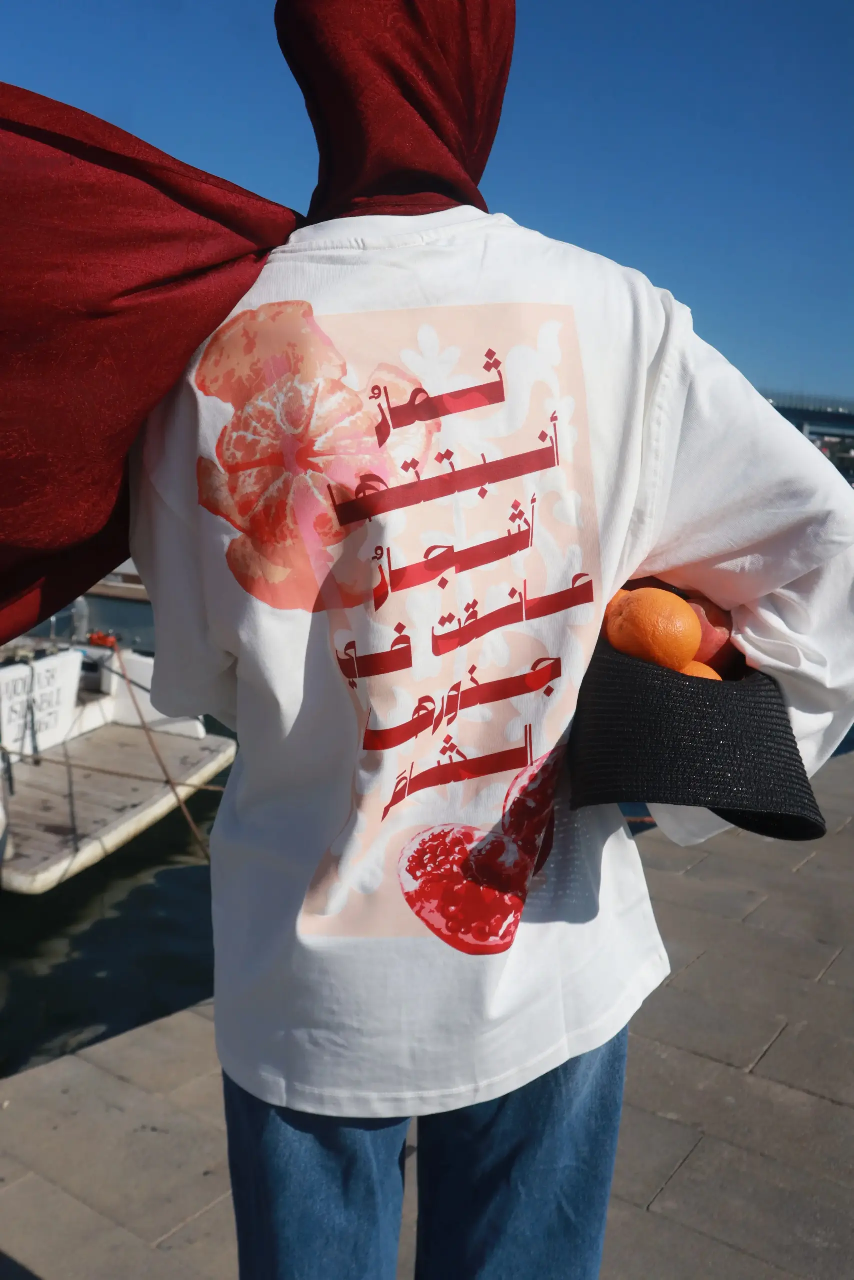 تصميم فريد يتضمن قصيدتين تعبران عن حب ثمار أرضنا. يحمل كلمات ُمنيسة دعبول ونزار قباني بألوان دافئة وخطوط بارزة تجسد